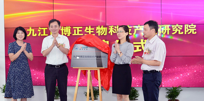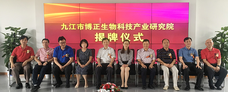 ? ? ? ?7?月 5?日上午,在九江學院文理實驗樓五樓,九江市副市長李軍、九江學院黨委書記趙偉、九江市委組織部副部長余響玲、江西博萊大藥廠有限公司董事長唐進波,共同為九江市博正生物科技產業(yè)研究院揭牌。