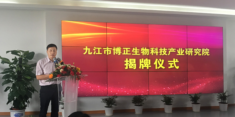 唐進波董事長代表九江博萊農業(yè)集團及江西博萊大藥廠有限公司致辭,對九江市委市政府及相關職能部門,多年來對博萊集團關心和支持表示真誠的感謝, 對參加揭牌儀式的各位領導和嘉賓表示熱烈歡迎,并介紹了九江市博正生物科技產業(yè)研究院組建情況,暢談了研究院今后的科研規(guī)劃和發(fā)展愿景。