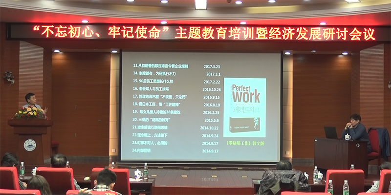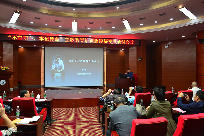 2019年10月31日下午,九江市農(nóng)業(yè)產(chǎn)業(yè)化龍頭企業(yè)協(xié)會會長唐進(jìn)波先生特邀中國精細(xì)化管理研究所所長汪中求先生,在九江學(xué)院逸夫圖書館報(bào)告廳,以“經(jīng)濟(jì)下行的緣起及其應(yīng)對”為題,為到場的百余位協(xié)會會員授課。