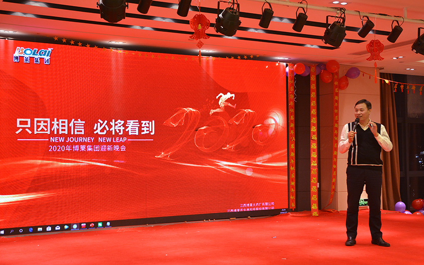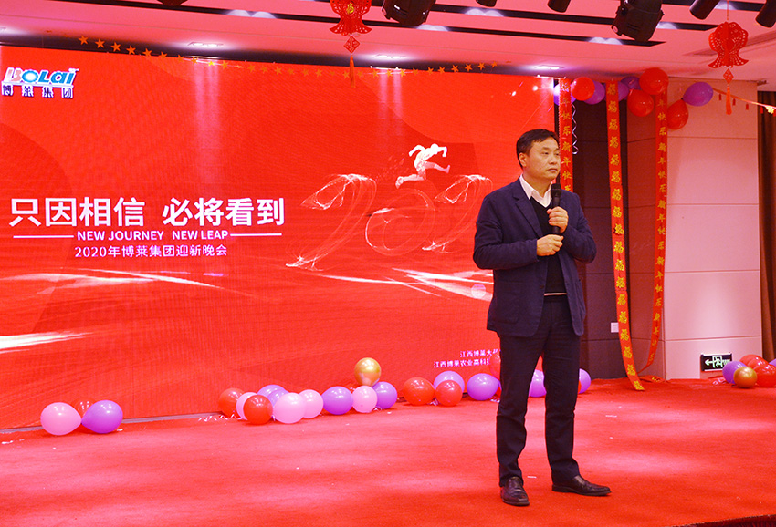 董事長(zhǎng)唐進(jìn)波致辭,他與大家一起總結(jié)了2019年在非洲豬瘟的影響下,行業(yè)發(fā)展的形式,對(duì)這一年員工辛勤的努力,給予了高度的肯定,也指出了不足。他還談到了2020年的發(fā)展方向和對(duì)博萊家人們的期望,并向全體員工和集團(tuán)伙伴,致以新年的問候和美好的祝愿。