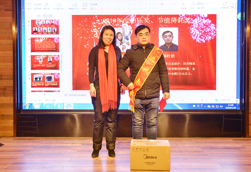 在2019年度優(yōu)秀團隊和先進個人表彰環(huán)節(jié)中,頒發(fā)了模范家屬獎、新人獎、金牛獎、伯樂獎/節(jié)能降耗獎、優(yōu)秀團隊獎共計6個獎項,熊總和肖總等領導為獲獎人員頒發(fā)了證書和獎品。公司的財富就是員工,員工的凝聚力決定了公司的核心競爭力,而這群努力、優(yōu)秀、有擔當?shù)膯T工,正是博萊藥業(yè)實現(xiàn)快速發(fā)展的根本動力。
