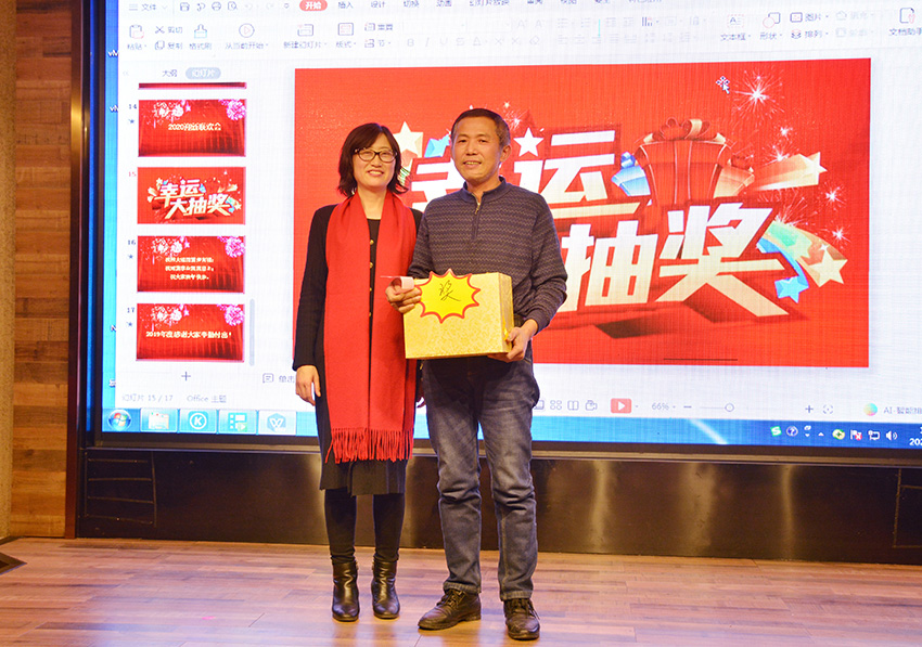 律回春暉漸,萬象始更新。2020年1月16日,江西博萊大藥廠有限公司廠部(以下簡稱“博萊藥業(yè)”)“2019年度總結表彰暨2020迎新聯(lián)歡會”在田園尚錦酒店隆重舉行。博萊集團副總裁熊俊芳、博萊集團黨支部副書記王芳榮、博萊藥業(yè)總經(jīng)理肖欣戈、博萊彩印有限公司總經(jīng)理殷忠友及全體同事在喜慶、祥和、熱烈的氛圍中,齊聚一堂。