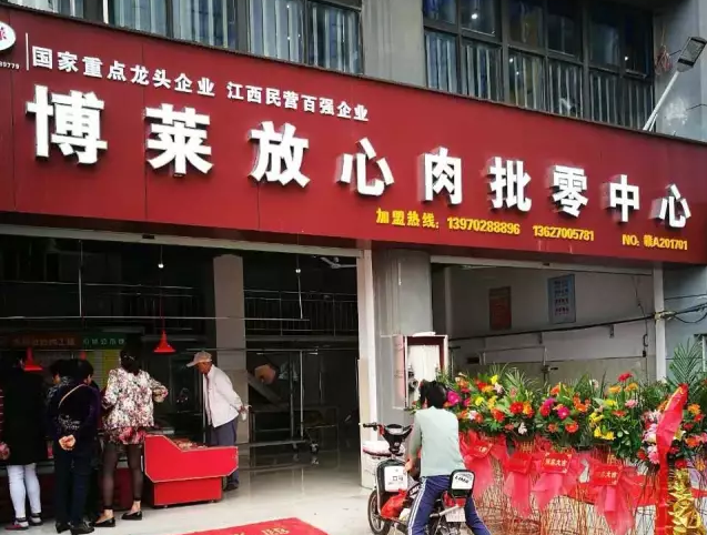 ? ? ? ?2017年5月3日,?博萊集團(tuán)放心肉工程又一銷售網(wǎng)點——位于南昌市航空路深農(nóng)市場的博萊放心肉批零中心隆重開業(yè),博萊集團(tuán)副總裁肖總、總裁辦徐經(jīng)理一行領(lǐng)導(dǎo)親臨現(xiàn)場參加開業(yè)典禮。放心肉批零中心的成立進(jìn)一步完善了博萊放心肉的批發(fā)、零售供應(yīng)鏈,將博萊放心肉涵蓋范圍擴(kuò)大到以九江市、南昌市為中心,半徑200公里的生活圈,極大地方便了廣大市民購買博萊放心肉。